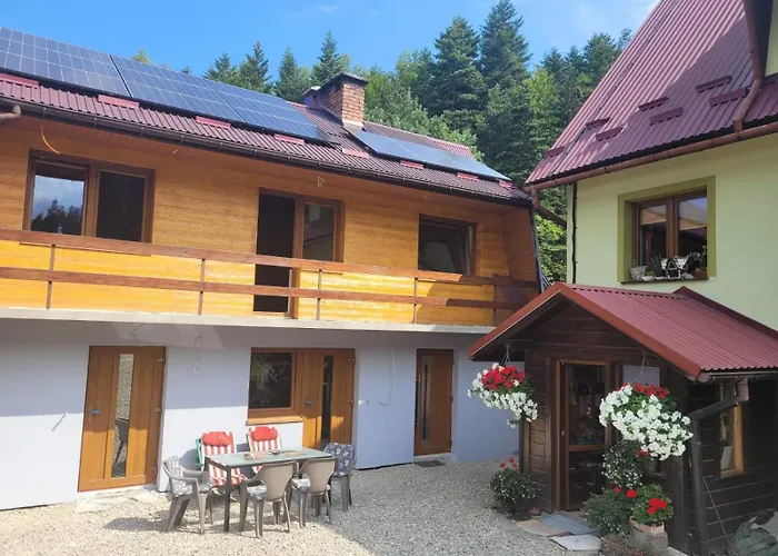 Questa villa offre servizi per la preparazione di tè/caffè, nonché un angolo cottura con un frigo e utensili da cucina. L'aeroporto Internazionale di Cracovia-Balice Giovanni Paolo II dista 75 km da quest'alloggio, mentre la fermata dell'autobus Skawica Sucha Gora Boisko si trova a circa 400 metri. Il luogo offre agli ospiti un'area picnic e aree per barbecue, oltre a una jacuzzi e una sauna.